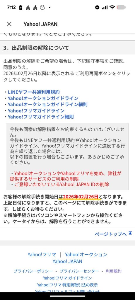 今回の規約違反によって30~40近く出品していた商品がすべて取り消され、アカウントも制限されてしまいました。